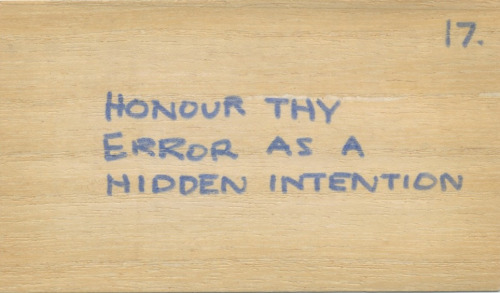 Dans le même ordre d'idées, Brian Eno employait dans les années 70, lors de ses premières collaborations avec David Bowie, les Stratégies Obliques – à savoir un jeu de cartes sur lesquelles figuraient des instructions concernant l'exécution d'un morceau de musique.